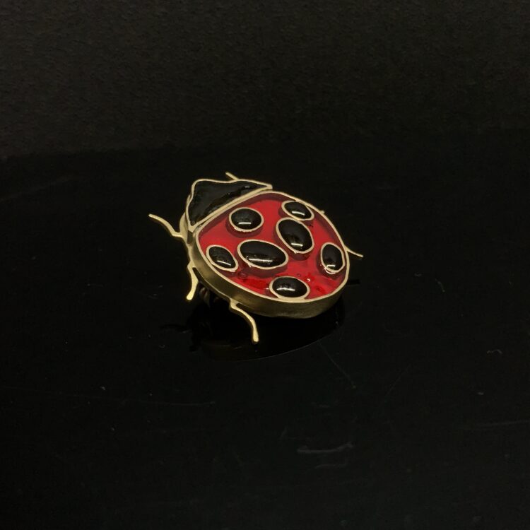 真鍮板を切り抜き、ナナホシてんとう虫の模様を作成 Photo taken with Focos ―金属の温もりが宿る、小さな生命のアート― 真鍮板をひとつひとつ切り抜いて形づくられたてんとう虫のブローチ。真鍮という金属は、年月とともに独特の風合いが増し、使う人の時間をそのまま刻み込む素材です。磨き立てのときは明るく黄金色に輝き、手のぬくもりを吸い込むように柔らかな艶を帯びていくので時間と共に変化していく風合いも楽しめます。 作業はまず、真鍮板にナナホシてんとう虫のシルエットを描き、糸鋸を使って丁寧にカットしていきます。小さな星の模様や羽の分かれ目をわずか1ミリ単位で彫り出すその作業は、長年の経験と集中力が必要となります。感覚だけを頼りに、細かな曲線を描き出す作業は、集中力と根気がいる作業です。 金属は加工の際に熱を加えると柔らかくなり、冷ますと再び硬さを取り戻す性質を持っています。その特性を理解し、繊細な部分を折らずに切り出すには熟練の技が欠かせません。何度も火を入れ、叩き、磨き上げていくその過程は、まるで生きた昆虫に命を吹き込むような時間です。 ナナホシてんとう虫の星模様は、幸福の象徴としても知られています。日本では昔から「天道虫」と書き、太陽に向かって飛ぶ姿から“お天道様に導かれる虫”として縁起物とされてきました。そのため、てんとう虫をモチーフにしたアクセサリーは、幸運や前向きな人生の象徴として贈り物にも人気があります。 真鍮の柔らかな黄金色とてんとう虫の丸みのあるフォルムは、どこか懐かしく、和の心を感じさせる存在です。洋服だけでなく、着物や和装にもさりげなく映えるのが魅力。バッグや帽子のワンポイントとして身につければ、季節を問わず楽しめます。 使い込むほどに味わいを増す真鍮は、経年変化を楽しむことができる金属です。年月を重ねることで表面に深みのある色が現れ、アンティークのような雰囲気を醸し出します。長く使うほどに、自分だけの色合いへと育っていく。そんな個性的な表情の変化も、このブローチの大きな魅力です。 日常の中でさりげなく幸運を呼び込むてんとう虫のブローチは、和の精神と職人の技が融合した小さなジュエリーともいえます。普段使いはもちろん、大切な人への贈り物にも最適です。 カラーレジンを使用しててんとう虫のカラーを表現 Photo taken with Focos ―レッドとブラックが奏でる小さな芸術― てんとう虫の鮮やかな赤と黒。そのコントラストを生み出しているのは、職人が一層ずつ手作業で流し込むカラーレジンです。真鍮板に切り抜かれた羽の間にレッドレジンとブラックレジンを丁寧に流し込み、乾燥と研磨を繰り返すことで、立体感と艶のある色彩を表現しています。 レジンは透明感と深みを併せ持つ素材で、光の当たり方によって印象を変える性質があります。赤の部分には少し透明度を残し、光が通ると柔らかく輝くように調整されています。黒の部分は艶を強め、まるで小さな宝石のように光を反射します。そのバランスが、ジュエリーとしての完成度を高めています。 真鍮とレジンという異素材の組み合わせは、古くから伝わる和の金属工芸と、現代的な樹脂アートの融合です。レジンは比較的新しい素材ですが、手造りの工程を経ることで、伝統技術の中にも自然に調和していきます。金属が持つ重厚感と、レジンの軽やかさが絶妙に調和することにより、どこにもない個性的なブローチに仕上がります。 てんとう虫の赤色には「幸福」や「情熱」という意味が込められています。さらに、黒の斑点は「厄除け」を象徴するともいわれています。レジンで再現されたその色合いは、まさに縁起物としてもふさわしい存在。身につけるだけで明るい気持ちを運んでくれるようです。 完成したてんとう虫のブローチは、見る角度によって異なる表情を見せてくれます。光の中で輝く羽は、まるで本物のてんとう虫が動き出す瞬間のよう。小さな作品でありながら、まるで命が宿っているかのような存在感を放ちます。 レッドとブラックのコントラストは、どんなファッションにもよく合います。シンプルなシャツやワンピースに付けると、上品で可愛らしいアクセントに。和装や着物の帯留めとして使っても、ぐっとモダンな印象を与えます。ジュエリーとしての完成度とアートとしての個性を併せ持つ作品です。 鮮やかな発色と手造りのぬくもりを併せ持つてんとう虫のブローチは、ファッションのワンポイントとしてだけでなく、幸福を願う贈り物としても最適です。大切な人へのプレゼントとして選べば、「幸せを運ぶ」という意味が自然と伝わります。 てんとう虫と縁起、ブローチとしてファッションアイコン Photo taken with Focos ―小さな幸せを胸元に添えるジュエリー― ナナホシてんとう虫は、七つの星模様が幸運の象徴とされ、ヨーロッパでも“Ladybird(聖母の鳥)”と呼ばれるなど、文化を超えて人々に幸せをもたらす存