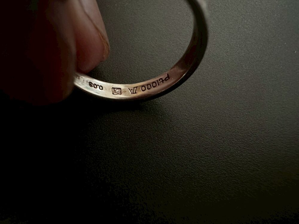 お預かりしたリングはプラチナ素材のシンプルな結婚指輪。